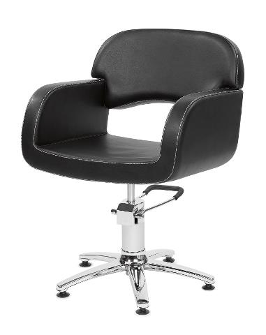 Frizerski stol v črni barvi, hidravlično zvezdasto podnožje.