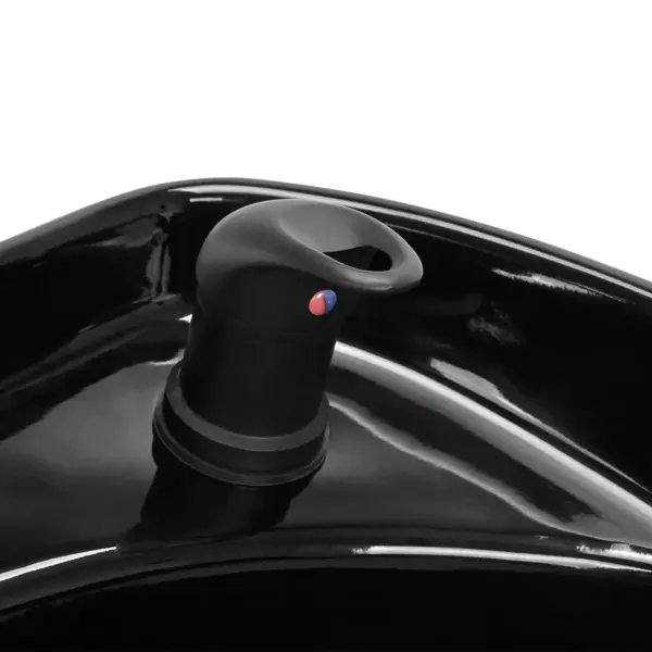 Črna keramična korita ustrezne globine preprečuje prekomerno brizganje vode in izdelkov, ki se uporabljajo med tretmajem, kar omogoča udobno izvajanje širokega nabora storitev . Možnost nastavitve kota posode vam omogoča, da nastavitev prilagodite svojim individualnim potrebam . Uporabljeni material naredi pomivalno korito trpežno, odporno na razbarvanje in praske ter zelo enostavno za čiščenje . Ustrezno oblikovan ovratnik zagotavlja oporo in udobje med umivanjem las, zahvaljujoč udobnemu plastičnemu pokrovu pa stranka ne bo čutila nelagodja zaradi hladne keramične površine .