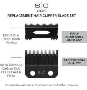 StyleCraft nadomestno ECHO fiksno DLC rezilo za strižnik z DLC rezilom z globokimi zobmi je profesionalno rezilo, zasnovano posebej za brivce in frizerje.
